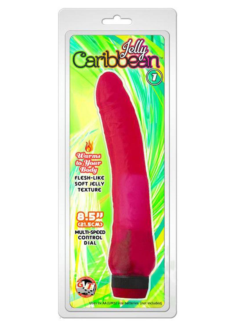 este vibrador de 8.5 «tiene una forma curva única para la penetración profunda y la estimulación del punto G. La serie de vibratos Jelly Caribbean presenta una textura suave como la carne que se calienta al cuerpo.